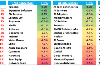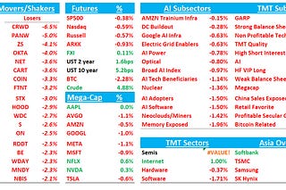 TMTB Mid-day Wrap: Reddit, Applovin, META Weakness; TMT Momentum worst day in years; Netflix price increase?; memory/semicap/optical unwind