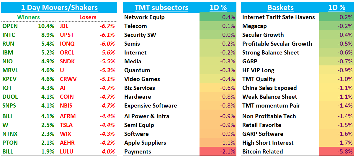 GOOGL -55bps as lots of talk this morning around OAI’s ad ambitions and what they mean for GOOGL.