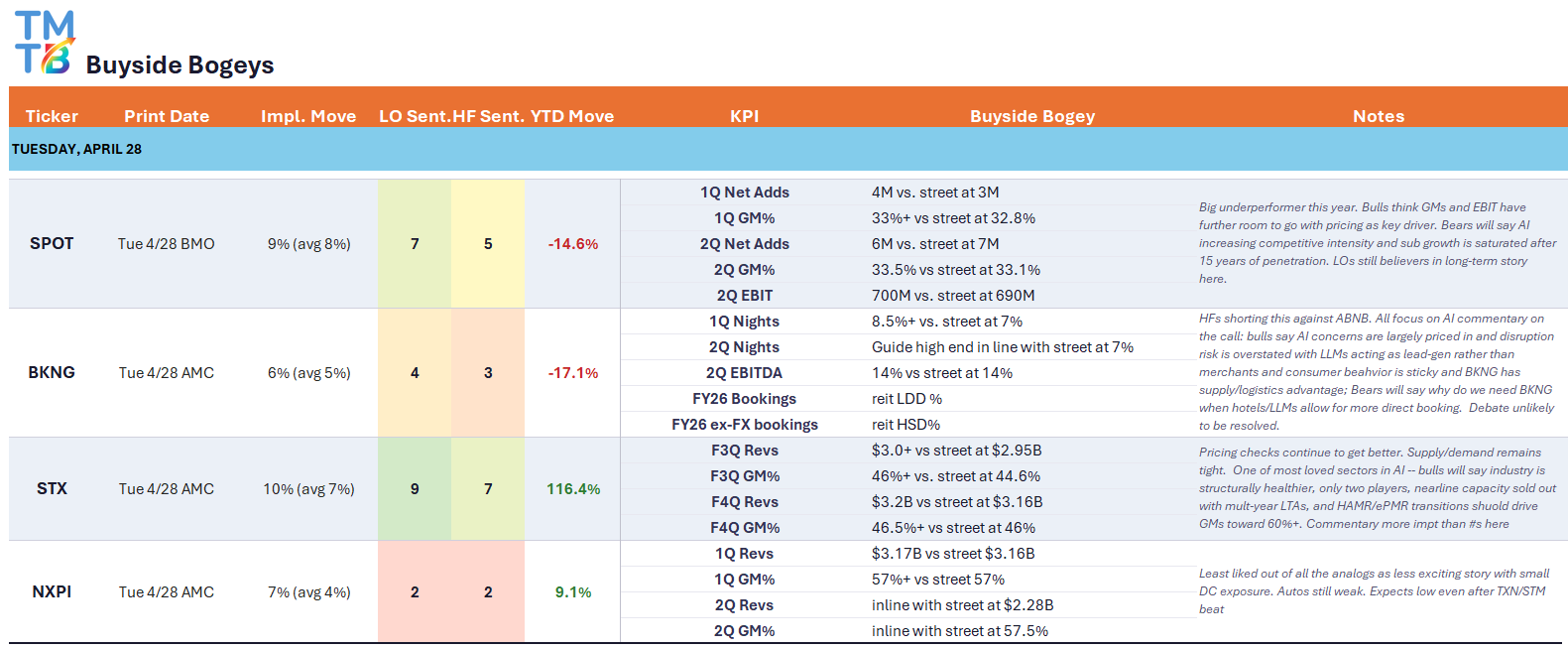 TMTB: Buyside Bogeys: Spotify (SPOT), Booking (BKNG), Seagate (STX), NXPI