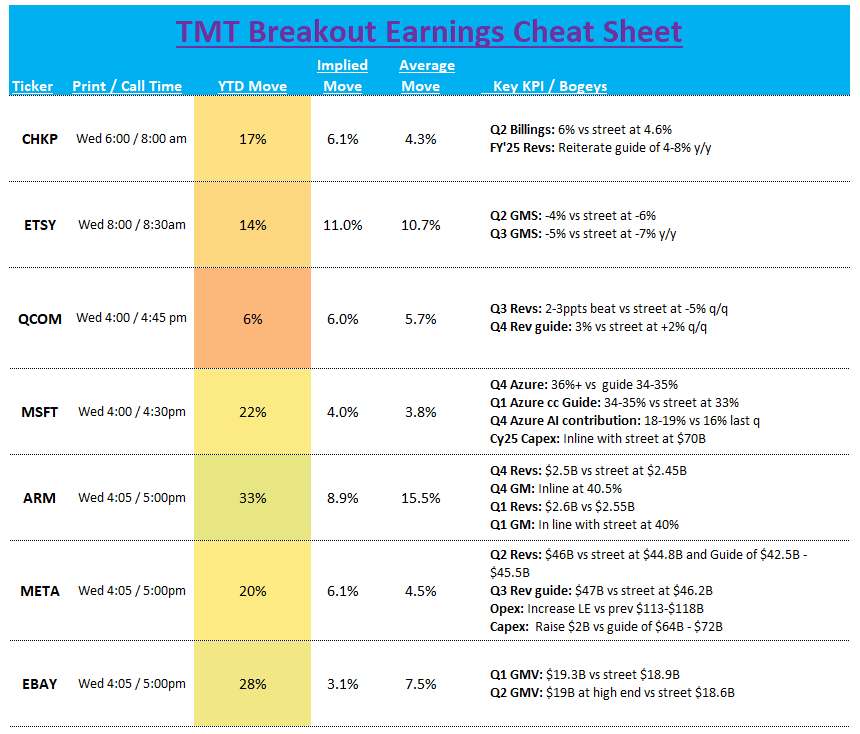 TMTB: Earnings Cheat Sheet: AMZN, MSFT, ARM, META, EBAY, AAPL, ETSY, RDDT, ROKU, RBLX, NET