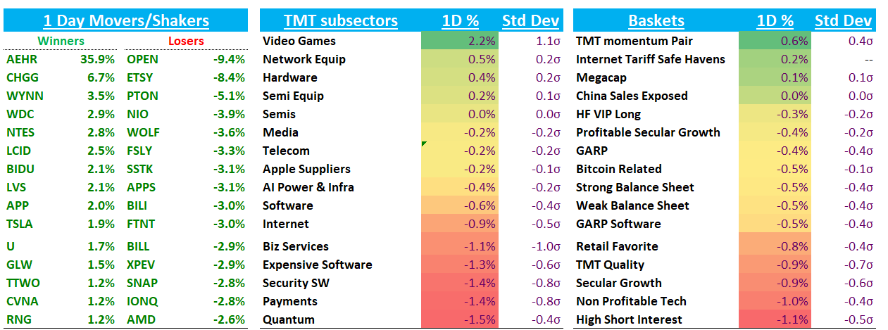 AMD -2.8% as Bluefin (semi boutique) said the Mi350 was running into qualification problems at xAI with thermal failures and weaker than expected performance. Bluefun warned that while AMD could still address the technical issues, setbacks increase the risk that xAI once again abandons AMD