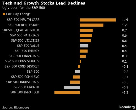QQQs -52bps while SPX finished flat on a day where price action underneath the surface told more of a story than headline indexes. YTD laggards outperformed winners significantly today - from an individual stock perspective in Tech but also a sector perspective. For example, healthcare is down the most YTD and was +1.9% on the day while SOX which leads sectors YTD was down 1.7%. XHB (homebuilders) +5% — maybe those OPEN meme traders just early in calling the housing turn ;)…