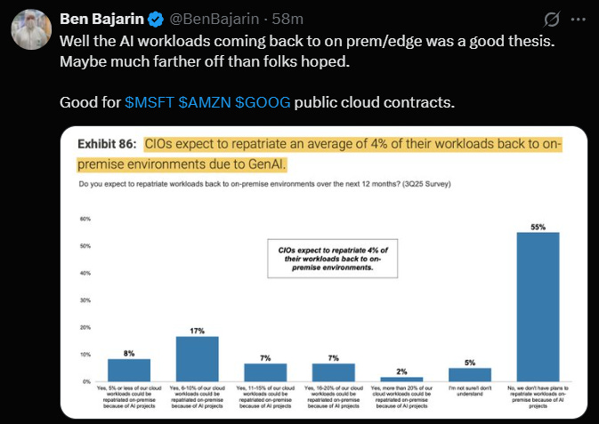 Neoclouds CRWV+2% + NBIS +8% and the hyperscalers the big beneficiaries of tight supply and speaks to news we got yesterday on AMZN raising prices.