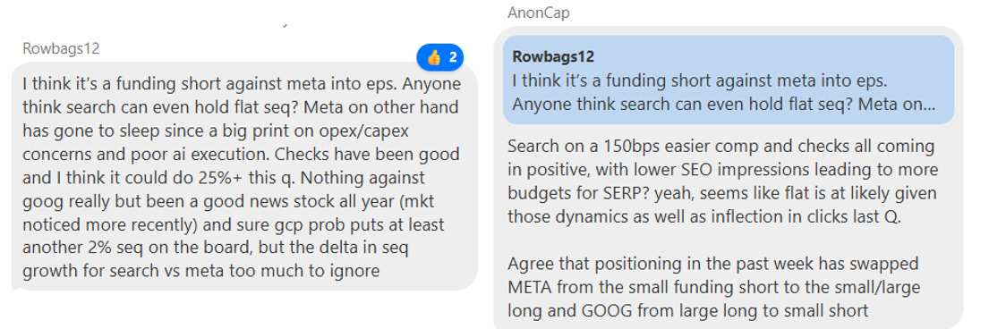 RDDT +4.6% as they hosted an AMA (Ask me Anything) with some OpenAI employees. The read-through here being that this is a tea leaf OAI appreciates the value RDDT brings, especially given all the ChatGPT noise the past few weeks (I know it’s a stretch - but that’s the mkt we’re in). RBC was also positive on some checks saying monetization trajectory looks healthy. Unlikely shorts will want to be there when they report given likely they crush revs so wouldn’t surprise me to see stock rally into the print, but mixed user data keeps on the sidelines. Likely a “B” long though but we’re taking a bit of a break from the stock for now until we get a cleaner set up.