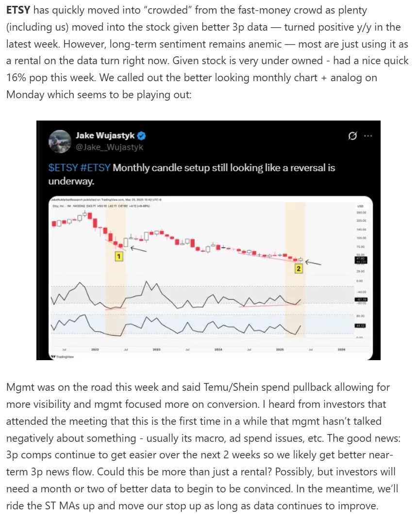 ETSY +6.5% following through on last week’s Yipit data. We recapped in our weekly yesterday: