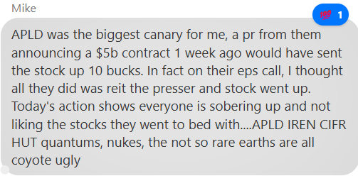 However, we immediately saw green to red reversals in GEV, VRT and APLD — all continuing the recent sell-the-news action: