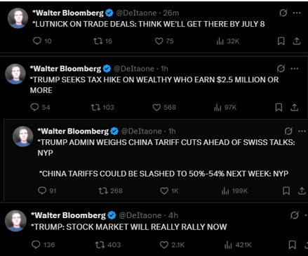 UK and US announced outlines of a bigger deal and admin says it’s the first of such agreements that will come in the near future. NYPost had an article saying Trump admin was thinking US could cut China tariffs to 50-54%% as soon as next week.