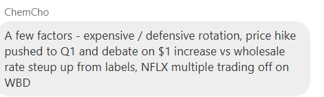 SPOT -3.4%: lots of questions on this name which likely speaks to plenty long. Not a lot of great answers on the weakness, but a TMTB reader chimes in: