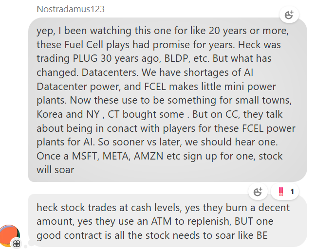 BE +9% as RBC says found permit application for 50mw at foxconn facility in CA. We covered the bull cases in our EOD wrap yesterday in case you missed it. Someone pitched FCEL +10%, who is targeting 100MW by year end as another energy play: