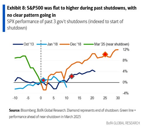 The gov’t shutdown news didn’t help either, although historically that hasn’t really impacted the market: