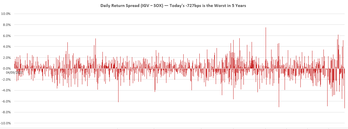 Today’s 7%+ underperformance vs semis was not only the biggest this year — which says a lot — but also the biggest in the last 20 years (I didn’t go further back but I’m pretty sure it’s the biggest ever)