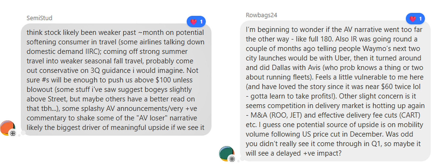 UBER +1% ahead of earnings this week as 3p continues to point to a mobility beat. Some good commentary in TMTB Chat today: