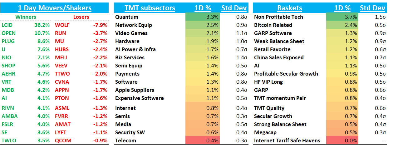 TSM +3.4% after a beat and raise, saying AI demand getting “stronger and stronger” (just wait until agents cause inference demand to skyrocket), guiding Q3 to +8% q/q vs buyside expects of 5% and ‘25 rev growth seen at 30% vs expects of high 20s. Expectations were high but this was better than expected. Bulls pointed out the +30% full year guide implies Q4 down 10% q/q vs typical seasonality of +7-8% — co. on the call said this was conservative.