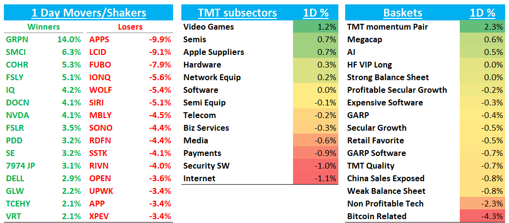 Good afternoon. QQQs +22bps. Slow August has started with broader market volumes down 21% and turnover down 30% on the 20 day average with liquidity light (h/t DB). Was a slow day other than reports suggesting Iranian retaliatory strikes could be imminent which caused the market to sell off early morning and oil to spike (+3%). Megacap and AI led the way higher while non profitable tech led the way lower. Let’s get to it…