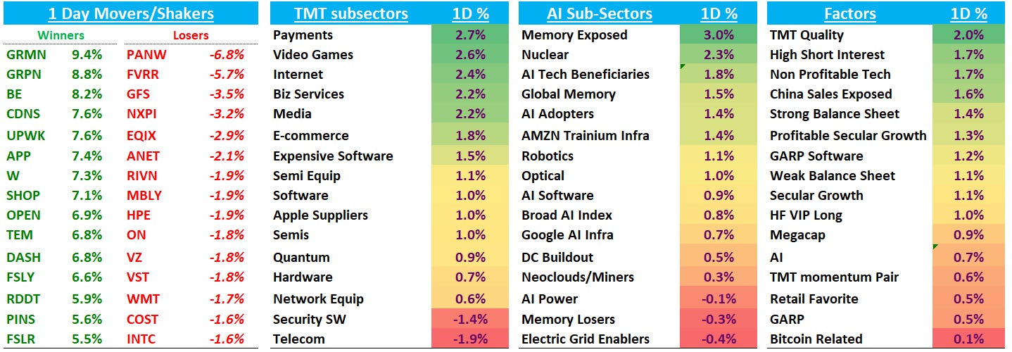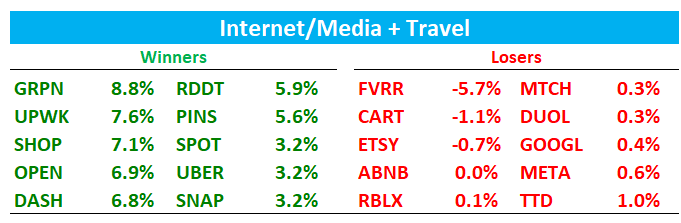 SHOP +7% as Stratechery was out debunking the bear agentic AI case. Not much new in his article but came down to this: