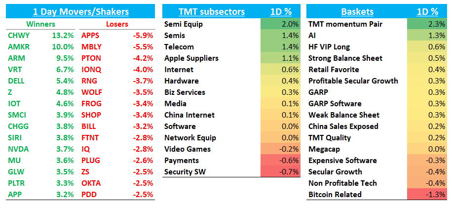 Good afternoon. QQQs flat as - yup you guessed it - AI semis continued to lead …yields ticked lower, ARKK -1%; Oil +1.4%. Winners keep on winning continues to be the name of the game…