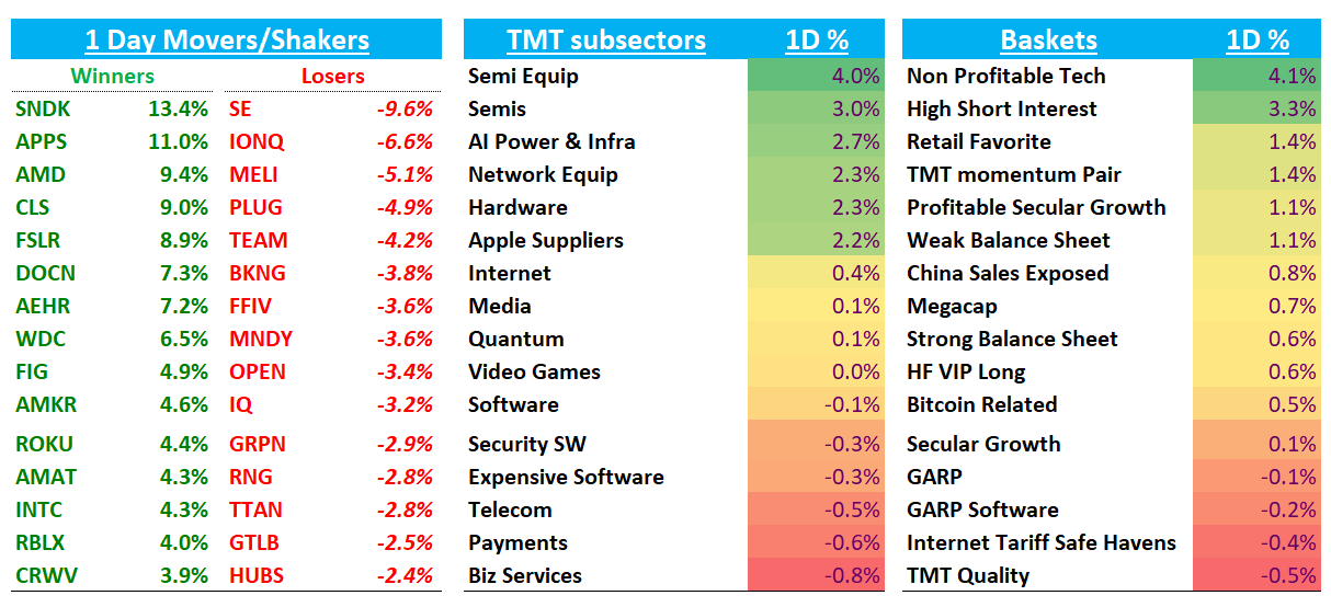 SNDK +13% / WDC +6% / STX +4% / MU +3% as memory back to doing its thing…DRAM/NAND prices continue to ramp