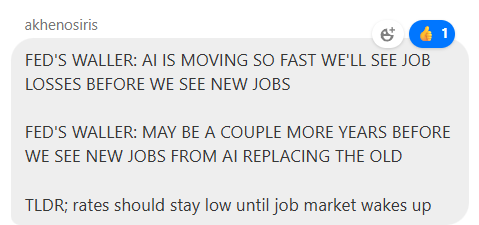 QQQs +71bps as stocks were v strong early but sold off a bit throughout the day. Some pointed to some more hawkish comments from Bessent, but didn’t seem like much new and more posturing. Market continues to price 50bps worth of cuts throughout the rest of the year. Semis went back to leading in Tech despite NVDA finishing in the red as AMD +9.5% led to the way hitting new highs.