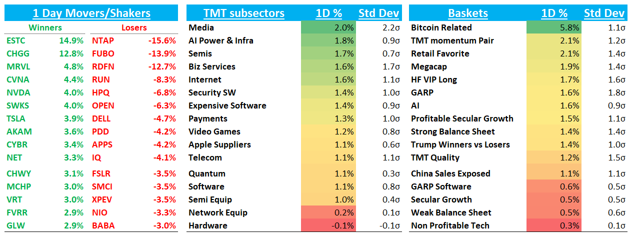 APP +1.5% (+2% in post) as they announced modification of buyback plan. The company's Board of Directors authorized the modification of the share repurchase program as follows: (i) $500M shall be immediately available for repurchase of shares of the company's Class A common stock, notwithstanding the amount that otherwise would have remained available during the quarter under the prior Free Cash Flow limitation, and (ii) the Current Limit shall be increased in future quarters by the amount of Free Cash Flow generated in the preceding fiscal quarter, with the Current Limit and any increases to be carried forward and remain available for future repurchases if not used and the aggregate amount that may be repurchased not to exceed the Existing Repurchase Maximum Amount.