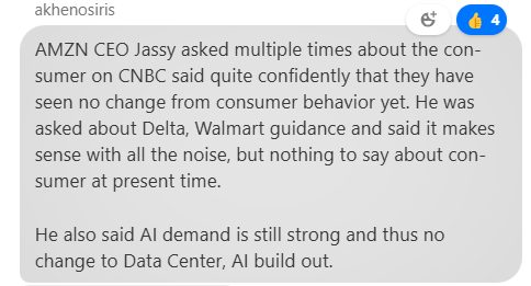Other Ai names mixed: ANET -4%; ARM -6%; MRVL -13% (didn’t see anything here other than Jassy’s comments which didn’t seem negative); AVGO -7%; CRWV -13.5%