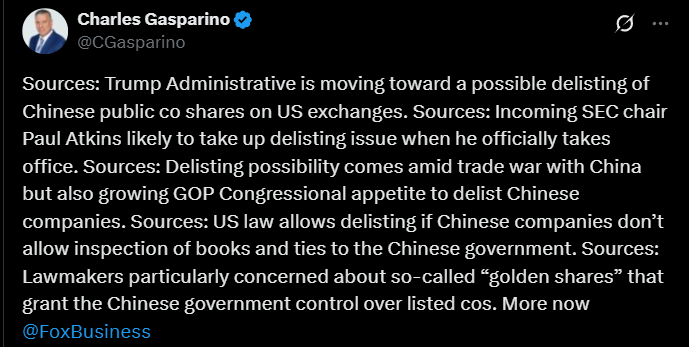 BTC -4%. Crude -3.5%. China flat was in the green late afternoon, before reports that Trump admin considering delisting Chinese cos: