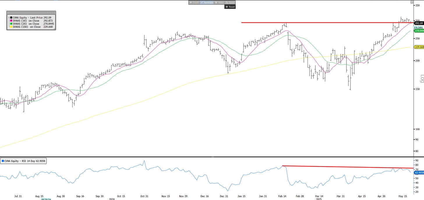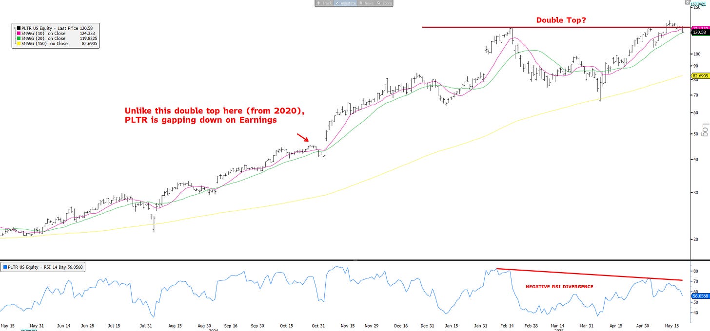 From a bottoms up perspective, saw CVNA and PLTR confirm false breakouts to ATHs. These were two of the strongest names that led us off the bottom, so I pay closer attention.