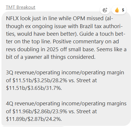 Post-close NFLX -6% looks like a bit of a yawner although commentary implies they are taking a look at WBD.