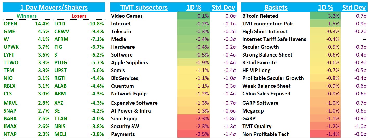 We’ll keep the recap short today given lack of news flow, but just call out a few moves which we found notable: