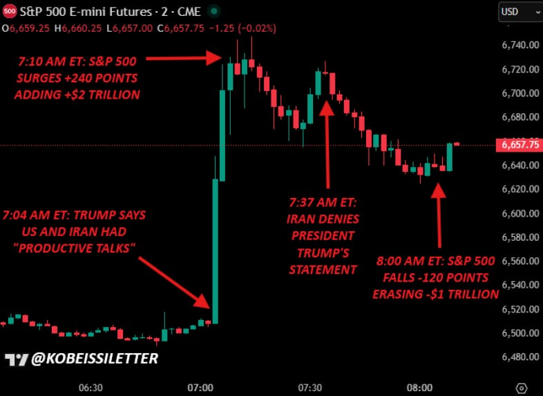 Overall, investors a bit more optimistic about Trump’s willingness and desire to step away from the war, but definitely no euphoria out there as still plenty of questions about how and what a deal would exactly look like and how willing Iranian side is to negotiate right now given their leverage with Hormuz. The base case here seems that the peak escalatory rhetoric likely behind us after the Qatar LNG strikes last week (rate of change getting better), but also that the process won’t be linear, will likely take a bit of time, and the fallout from high energy prices won’t be erased. Oil was -9% with Brent finishing close to $100. All of that being said, nothing resolved yet, but investors feeling a bit of relief, but also not enough to chase as there are still many unresolved questions.