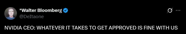 QQQs +63bps as the AI Summer is ending HOT despite NVDA finishing in the red today. Despite the price action, we thought Jensen did a good job bulling everyone on the AI supercycle calling out a 50% CAGR and $3-4 T in total AI spending through 2030. And it looks like Jensen is all-in on getting some chips approved for China:
