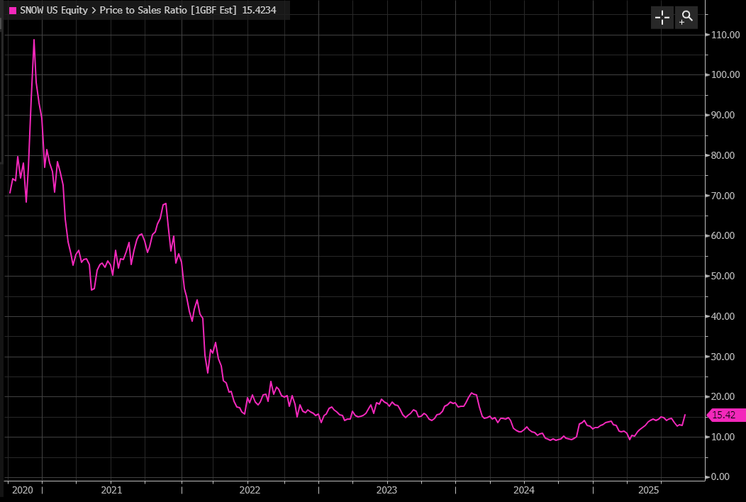 Yes, SNOW was growing 100% in early 2020s and 70% as recently as 2023. But many other SaaS names were also growing very fast so there were plenty of high growth stock with no secular/structural hair to choose from - now there is scarcity value at play. 20x doesn’t sound that unreasonable in this context.
