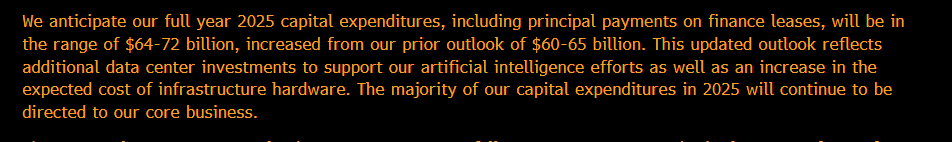 Capex raise good for semis, but some META investors might question given potential top line macro/tariff headwinds. Watch AVGO, CLS, NVDA on capex raise…