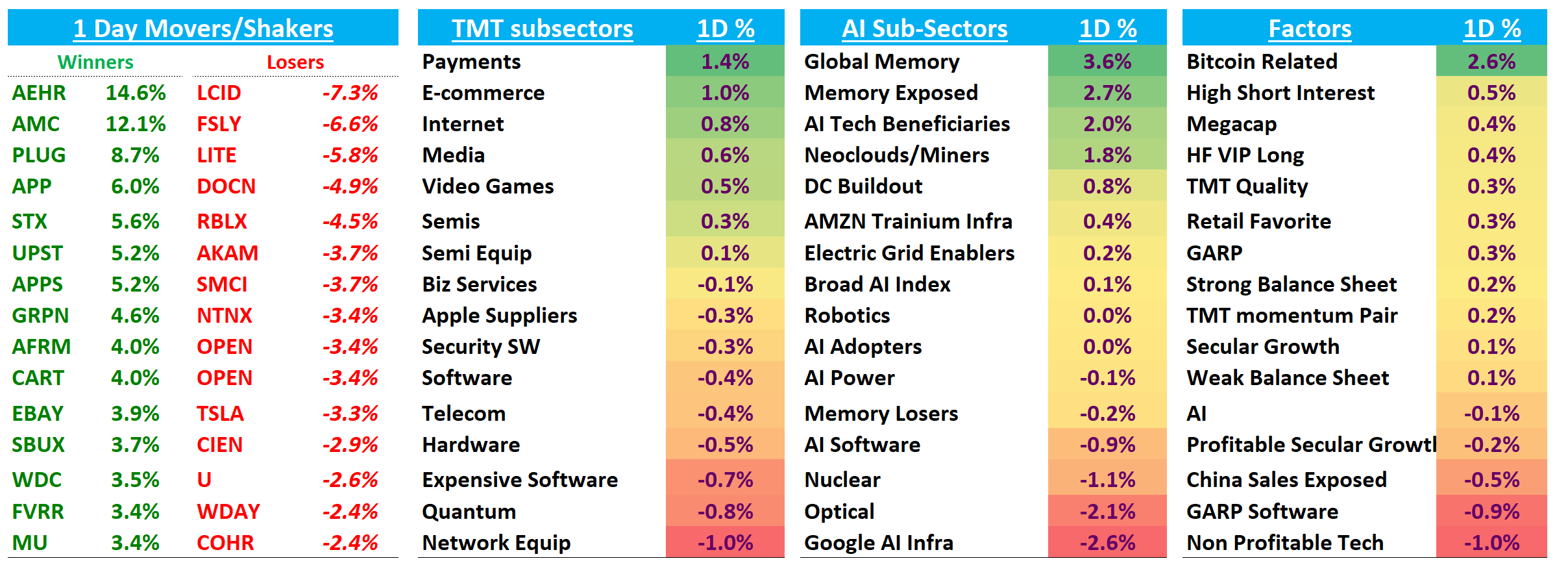 NFLX flat as GS upgraded to Buy saying they see sustained revenue growth driven by paid subs, ARPU expansion, and scaling ad revenue, alongside ~250bps annual margin expansion and strong FCF conversion (~70–75%). We wrote a little about stock in our EOD wrap on Friday. After pulling out of the WBD withdrawal, hearing more investors getting more interested again in what used to be one of internet’s darlings. Ad checks have been good but likely need to see engagement improve — which has been main overhang on the stock outside of WBD deal — to get stock back above $110+ range (25x+ $4 CY 25 EPS). Range prob $90-$110 right now, so r/r for us balanced around $100. Low 90s we find it interesting.