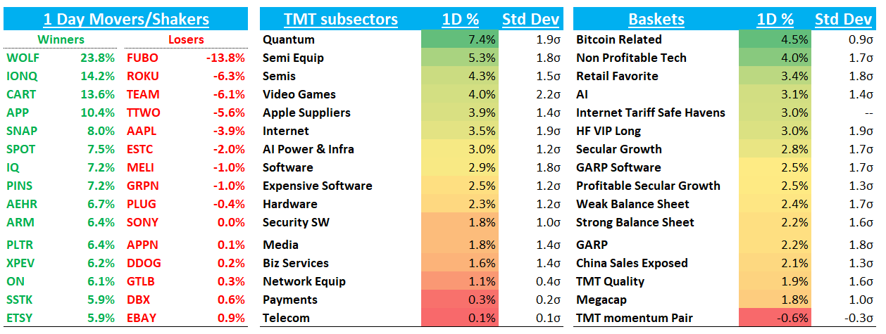 SOX +4% led the rally today as AI semis led the way higher — feels just like the good old times of ‘23/early ‘24.