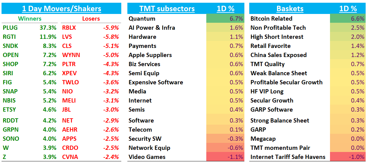 QQQS +12bps as head into the weekend and excitement builds for OAI Dev Day Monday. BTC +2.5% hitting new highs.
