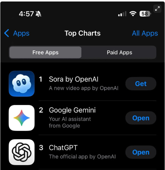 META -1% feeling a bit of the heat as Sora climbs to the top spot in the app store. Given it’s invite only still, it’s a pretty impressive ramp in just a few days