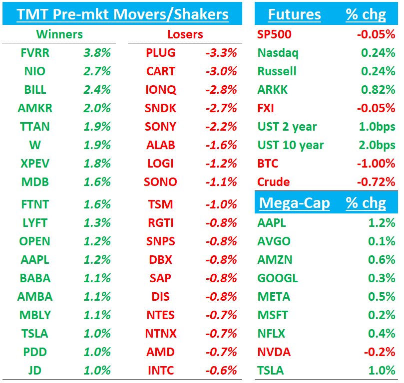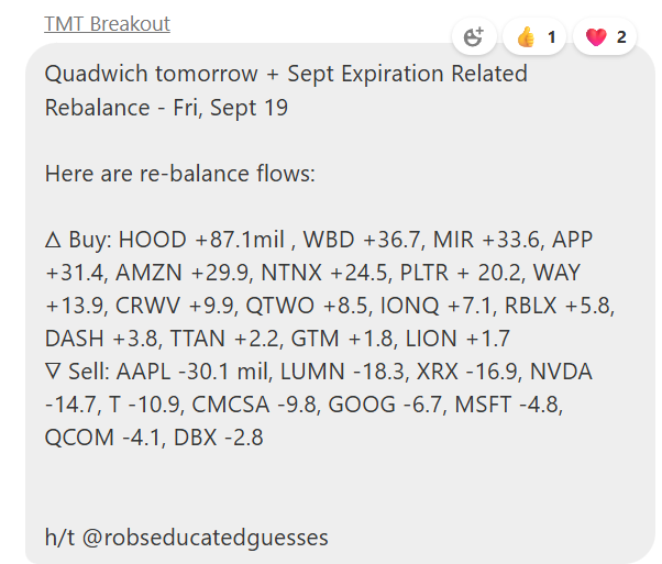 Good morning. Futures +25bps on Quadwich + rebalance day. BTC -1%; China flat; yields ticking slightly up.