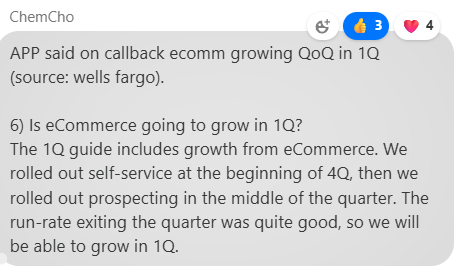 APP -8%: Beat-and-raise with Q1 revs roughly inline with bogeys, but investors were hoping for more on e‑commerce/ web ads scaling. Full Ecom G-A seems a few months away.