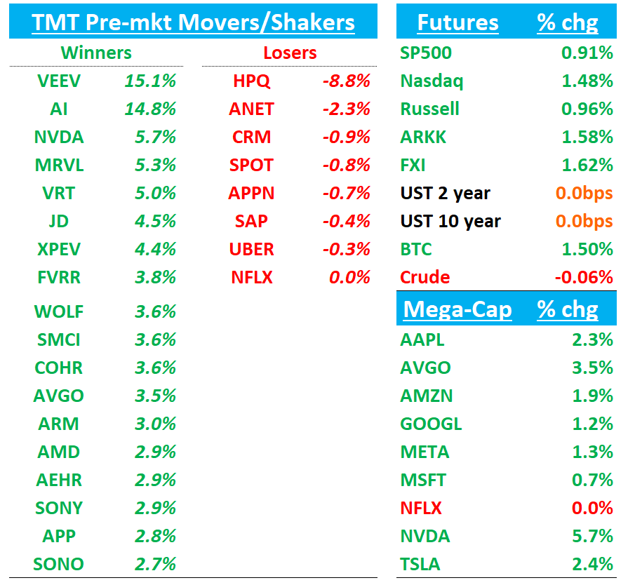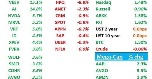Yields are flattish. BTC +1.3%. China +1.7%. Ai semis up on NVDA sympathy.