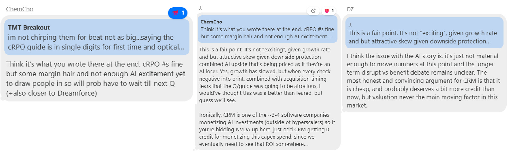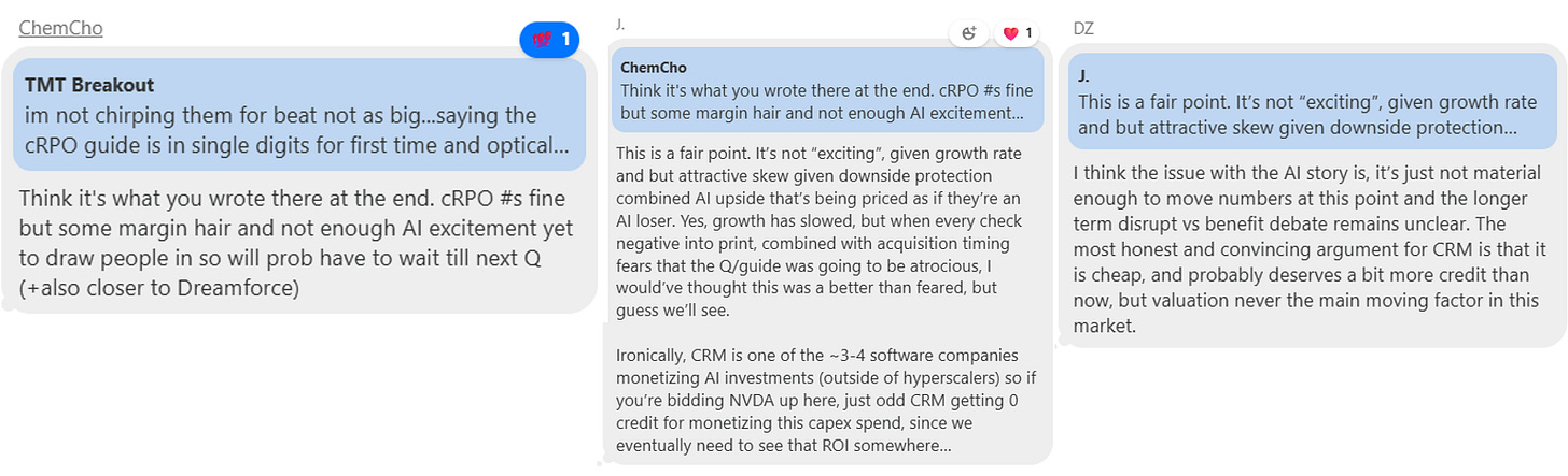 To sum: CRM posted a steady but unremarkable quarter. Early signs of Agentforce momentum are encouraging, but with core deceleration and little organic upside to guidance, investors remain unconvinced on whether the AI flywheel can fully reaccelerate growth in the near term.