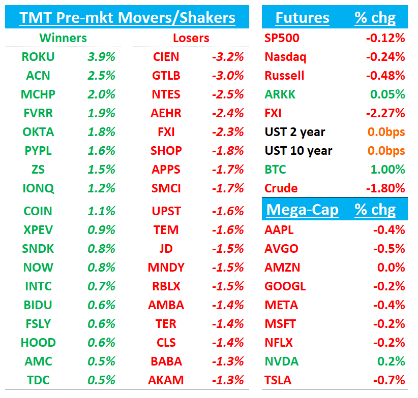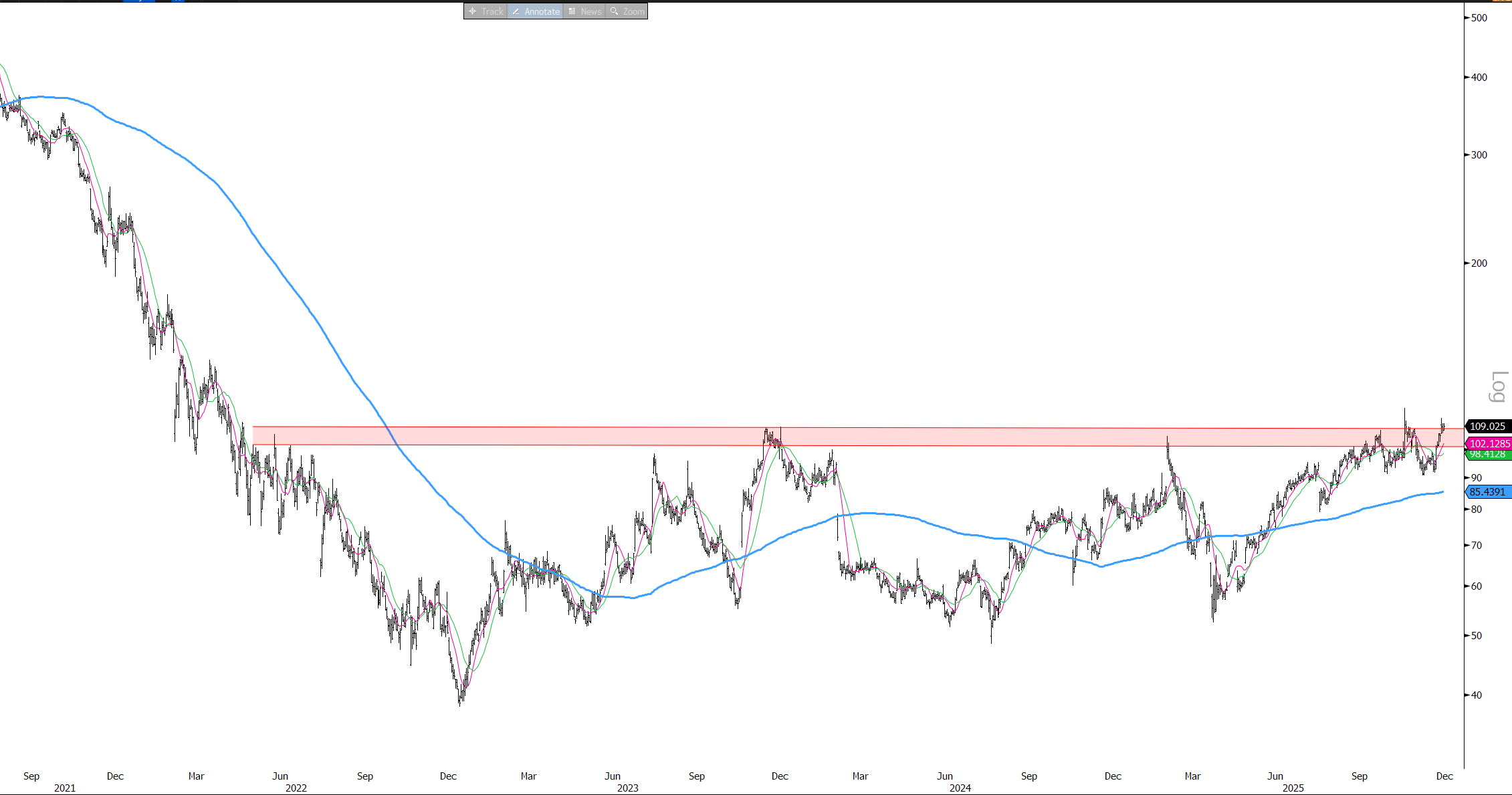 Fairly quiet morning although getting a flurry of the typical end of year upgrades/downgrades from the sell-side in their 2026 pieces.