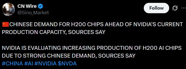 NVDA spiked up a bit early on this (although haven’t seen any other sources for it):