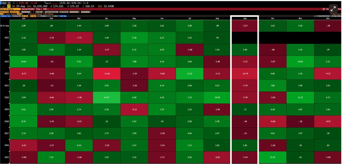 September is starting as you’d expect given seasonality: over the last 10 years, Sept has been down on average 2.5%, which is 200bps+ lower than the 2nd worst month.