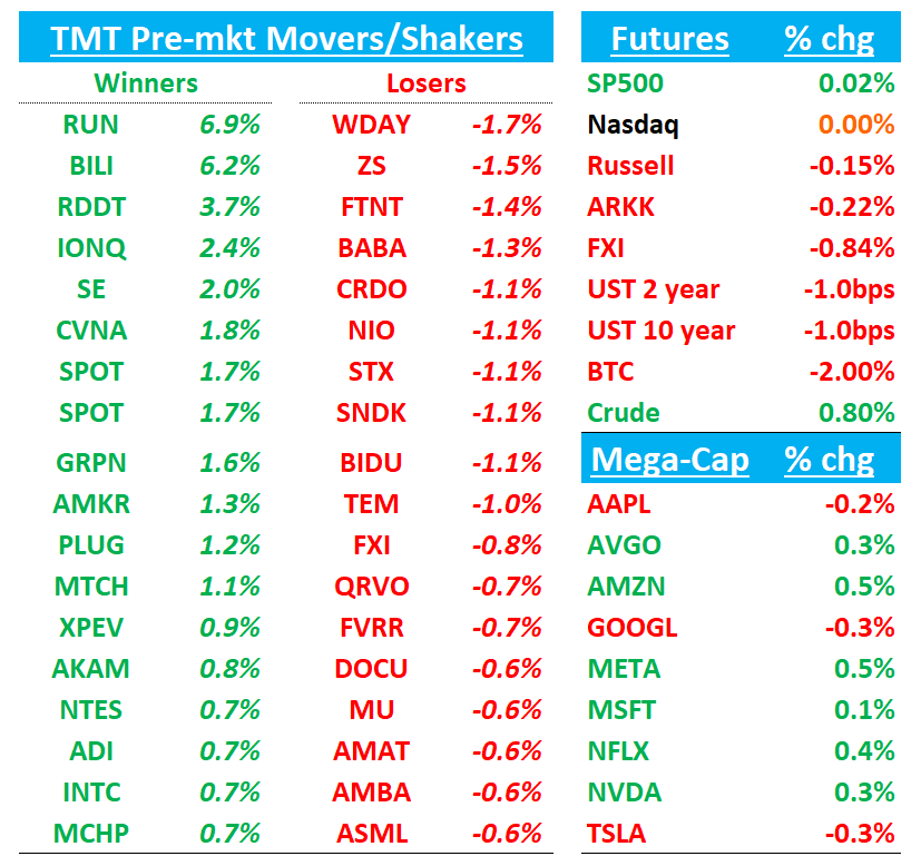 Good morning. Futures flat. BTC -2%. Yields slightly down with 10 year now belwo liberation day lows. Stocks in Asia saw gains across the board on Tuesday: TPX +0.03%, NKY +0.27%, Hang Seng +0.65%, HSCEI +0.76%, SHCOMP +1.36%, Shenzhen +1.76%, Taiwan TAIEX +0.23%, Korea KOSPI +0.24%