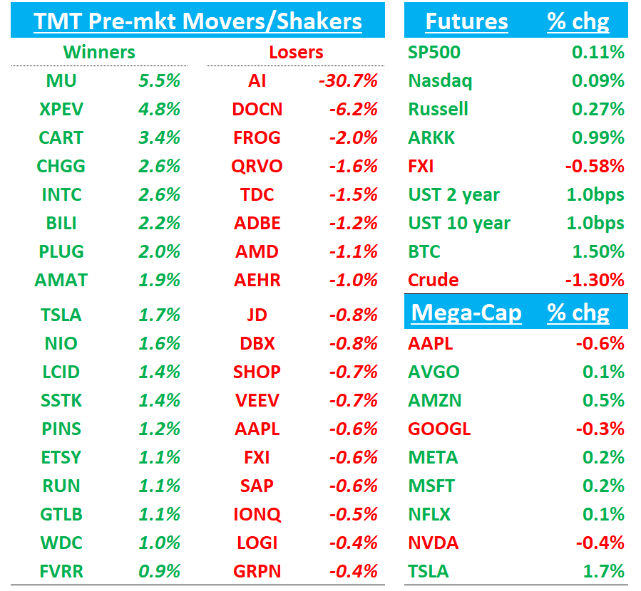 MU +5%: Positive pre-announced Q4 ...Q4 Revs to $11.1B - $11.3B vs $10.4B to $11B…GM to 44.5% vs prev 42%