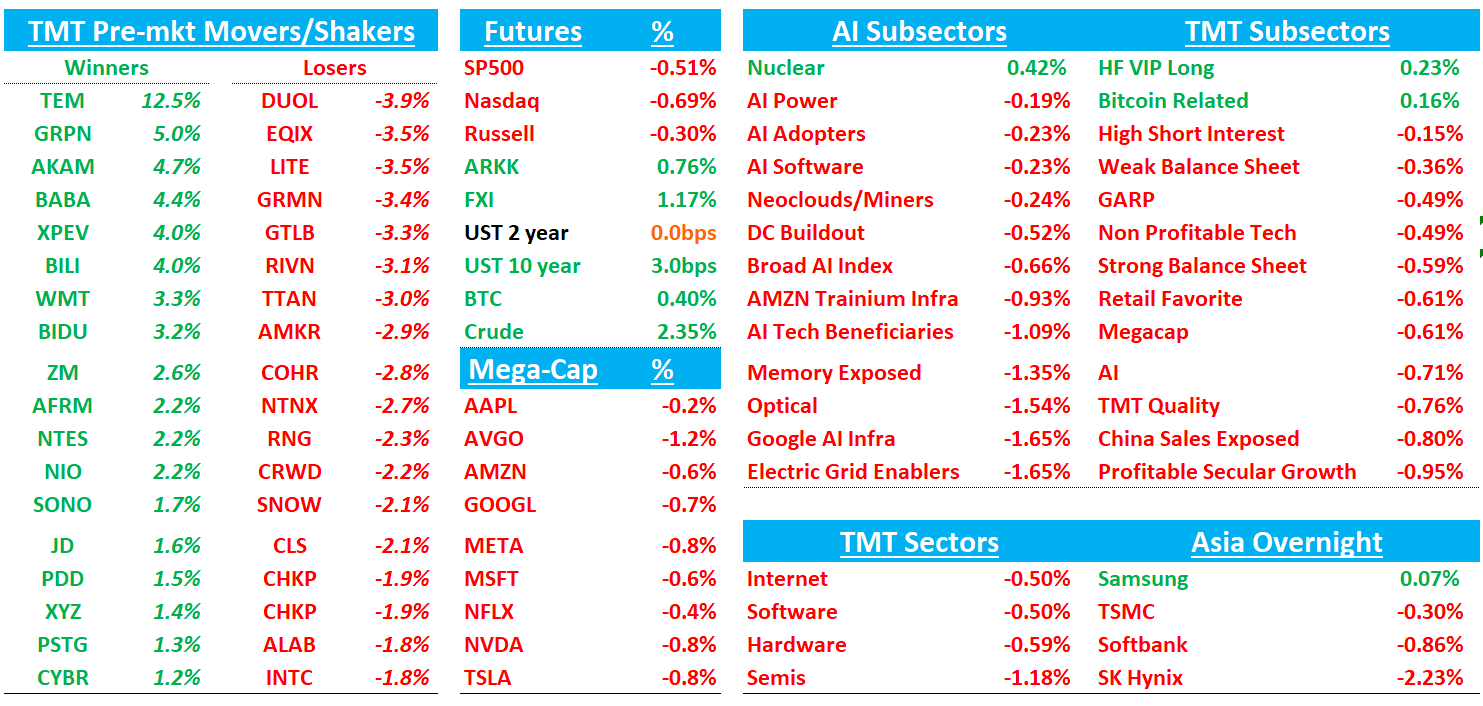 Good morning. Futures -66bps off early mainly driven by the criminal investigation launched into Powell. The other piece off macro news was Trump’s call Friday night for credit card industry to cap interest rates at 10%.