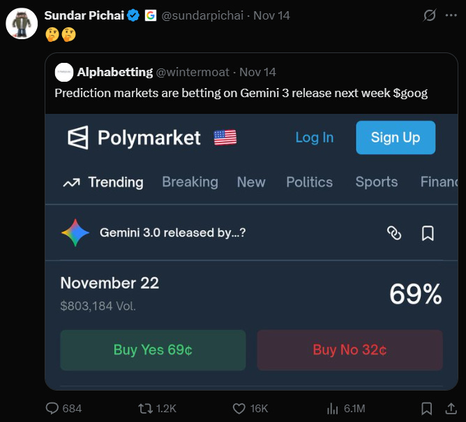 GOOGL +4%: Berkshire takes a $5B stake in GOOGL (1.8%) / Gemini 3 expected to launch this week (most expecting tomorrow as release date)