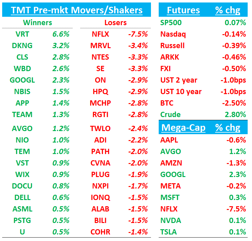 NFLX/TXN worse while GEV/VRT/APH (All AI proxies) better. We’ll hit those first, then get to the usual stuff…