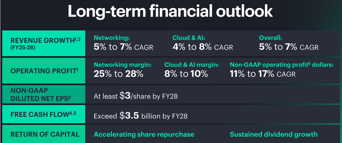 Mgmt clarified that they are guiding for taking share not losing. Their mix of biz is different than the tam since don’t have a lot of the ai data center white box business. That said they haven’t built that oppty into their numbers and think have good shot of winning there with being trying to be first at 1.6T and their unique liquid cooling tech.