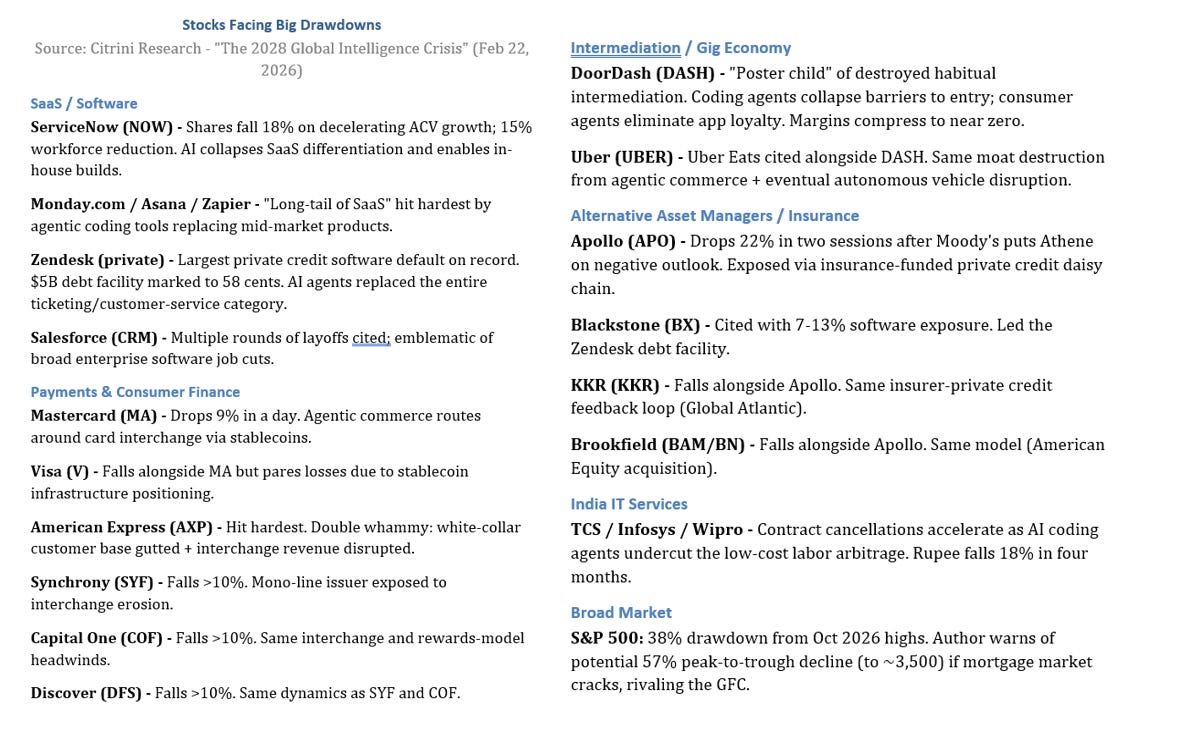 Article cited for weakness in some names early like DASH -4%. here’s a list of all stocks mentioned in the “thought exercise” AI economics doomsday scenario: